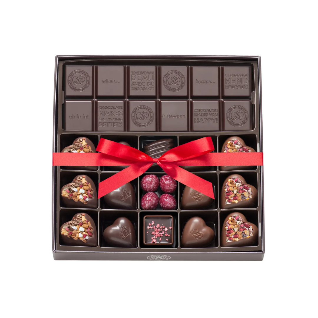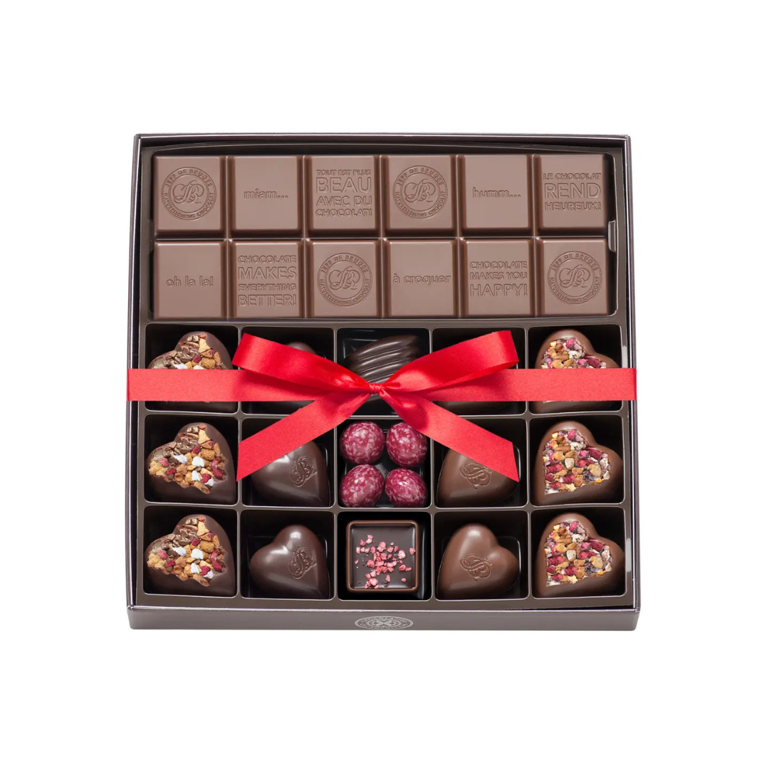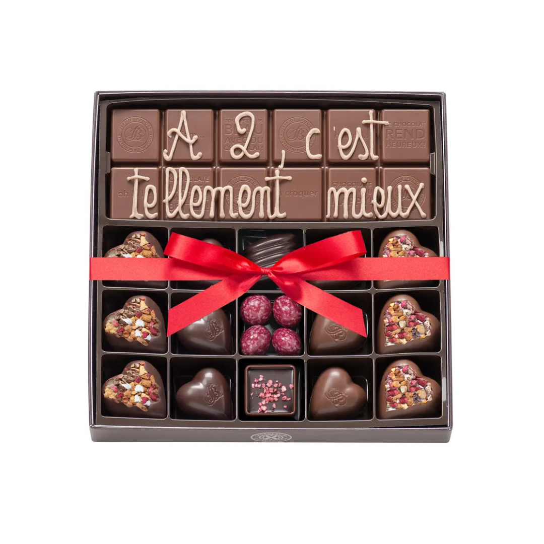 Une belle façon de déclarer son amour. Dans ce coffret gourmand, un assortiment de recettes en chocolat au lait ou en chocolat noir aux accords parfaits et surprenants dont nos 4 nouveautés exclusives créées pour la Saint Valentin.