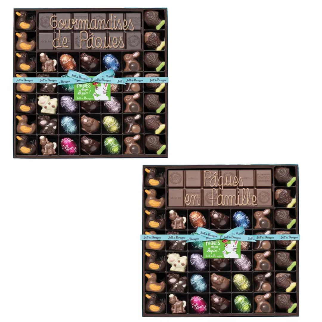 Boite 39 chocolats de Pâques et tablette de chocolat au lait ou noir