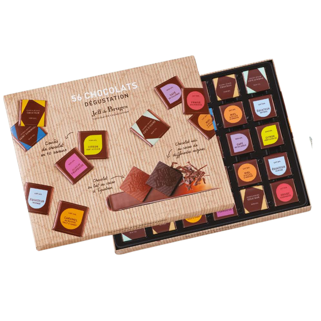 Faire doublement plaisir, c’est offrir un élégant coffret en bois et en plus, un assortiment de pralinés aux recettes aussi savoureuses que créatives. Délicieusement chic !