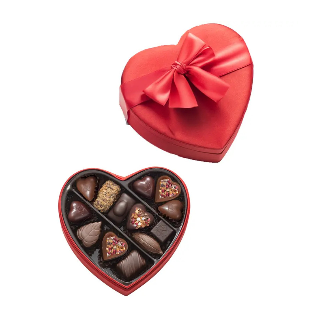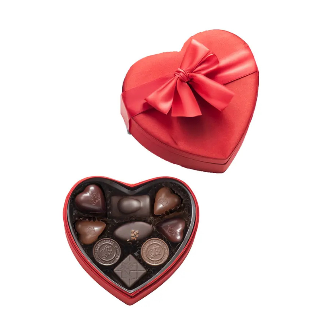 Cœurs éclats et Cœurs JB – chocolat au lait et chocolat noir assortis. Ingrédients : chocolat au lait (sucre, beurre de cacao, masse de cacao (fèves de cacao origine Équateur), LAIT entier en poudre, LAIT écrémé en poudre, émulsifiant : lécithines (SOJA), arôme naturel de vanille), chocolat noir (masse de cacao (fèves de cacao origine Équateur), sucre, matière grasse laitière (LAIT), beurre concentré (LAIT), beurre de cacao, émulsifiant : lécithines (SOJA), arôme naturel de vanille), pâte de NOISETTES, sucre, NOISETTES torréfiées et concassées, paillettes chocolat bronze (sucre, pâte de cacao, LAIT écrémé en poudre, agents d’enrobage : shellac et gomme arabique, émulsifiant : lécithine, colorants : oxyde et hydroxyde de fer), pâte de cacao, crumble (farine de BLÉ, sucre, beurre (LAIT), sel), crème (LAIT), humectant : glycérol, fruit de la passion, LAIT entier en poudre, beurre de karité, matière grasse de noix de coco, sirop de glucose, huile de tournesol, beurre concentré (LAIT), granules de meringue (sucre, blanc d’OEUF, amidon de maïs), pépites à la framboise (sucre, jus de framboise à base de concentré, dextrose, jus de citron à base de concentré, gélifiant : pectine, arôme naturel, colorant : concentré de carotte noire), AMANDES, LAIT écrémé, sirop de sucre inverti, groseilles lyophilisées, framboise déshydratée et lyophilisée, arômes naturels de vanille, de violette et de miel), miel, fleurs de violette odorante, sucre candi, NOISETTES, sirop de sucre, cacao maigre en poudre, cannelle, émulsifiant : lécithines (SOJA), concentré de pomme, concentré de groseilles noires, concentré de citron, concentré de radis, extrait de spiruline, agent d’enrobage : gomme arabique, correcteur d’acidité : acide citrique. Peuvent contenir des traces d’autres céréales contenant du gluten, d’œufs, de graines de sésame, d’autres fruits à coque et d’arachides.