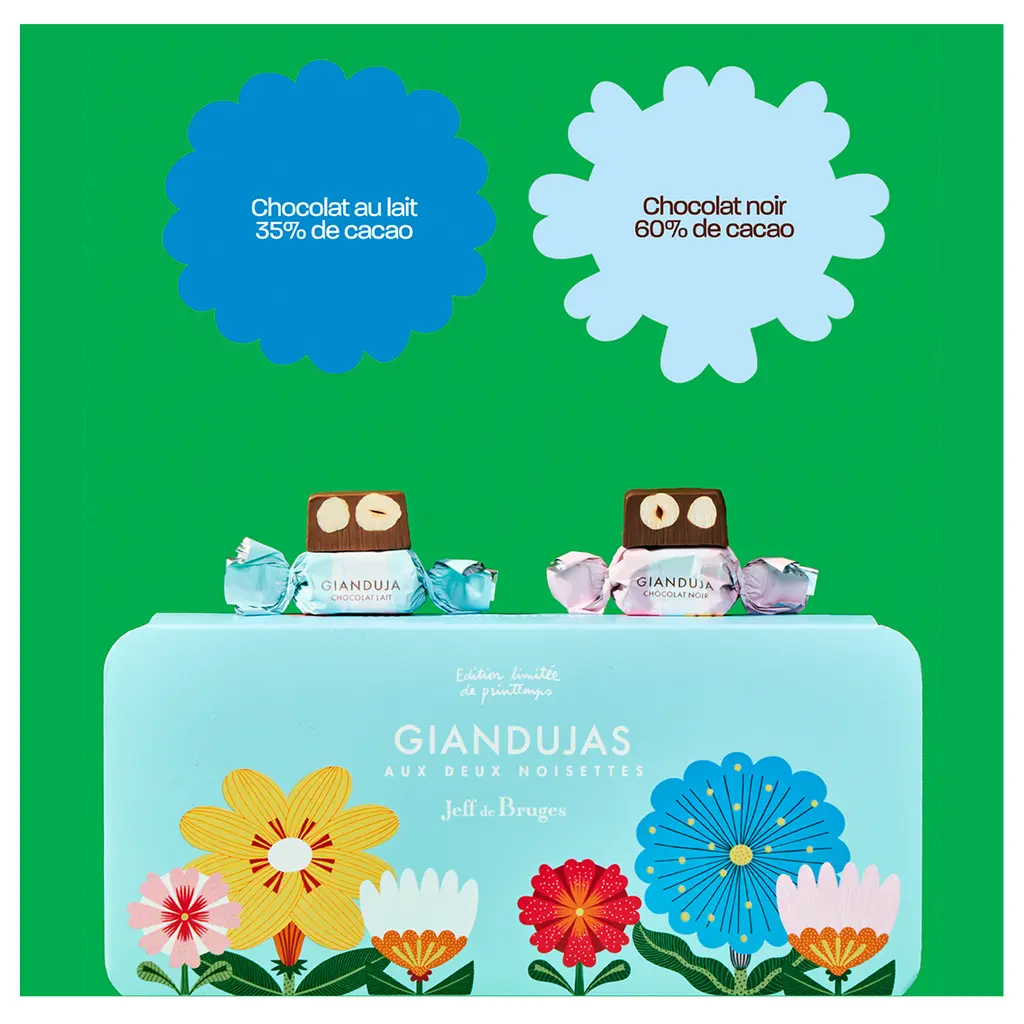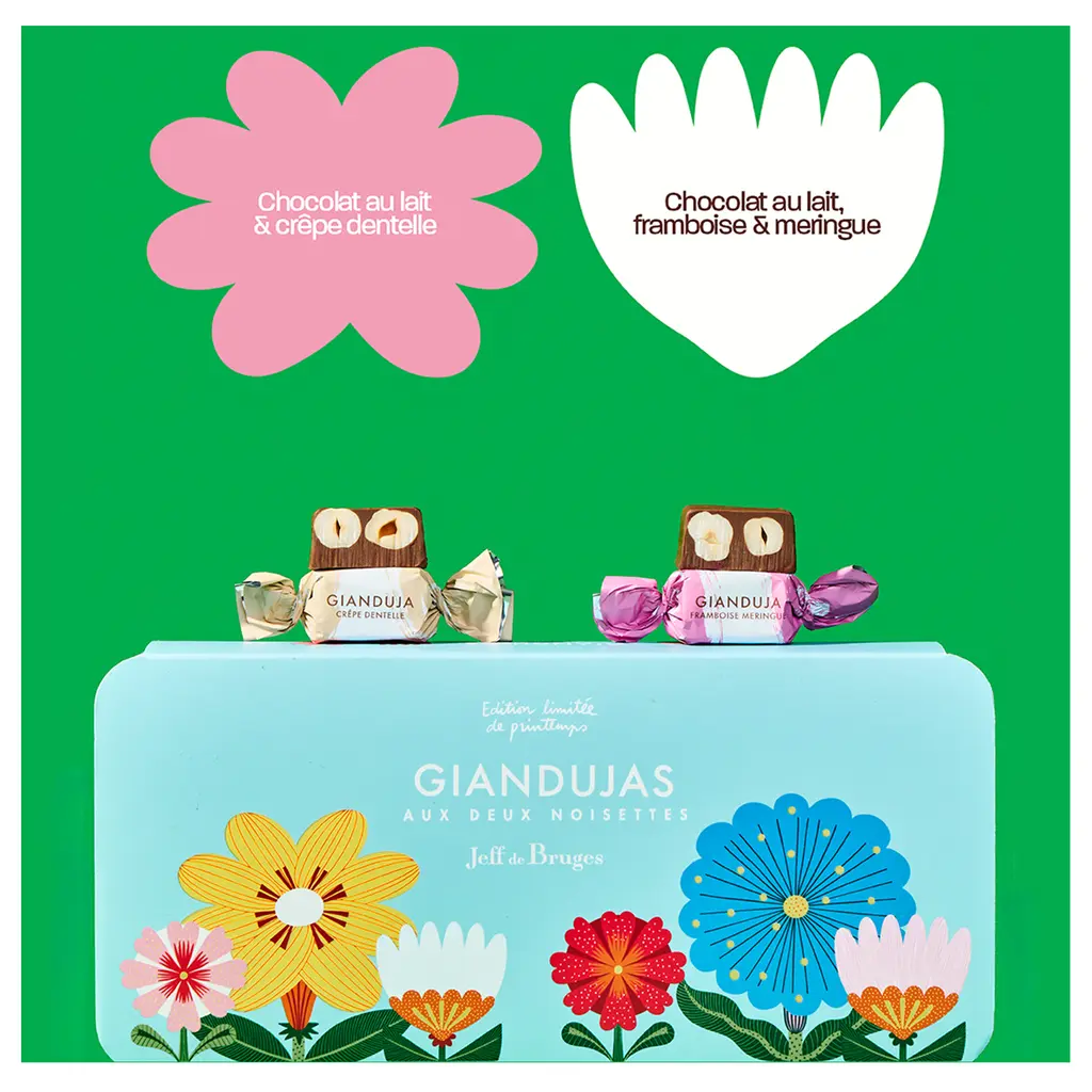 Pour le printemps, la boite métal giandujas aux deux noisettes se refait une beauté pour devenir le cadeau parfait.