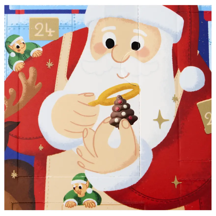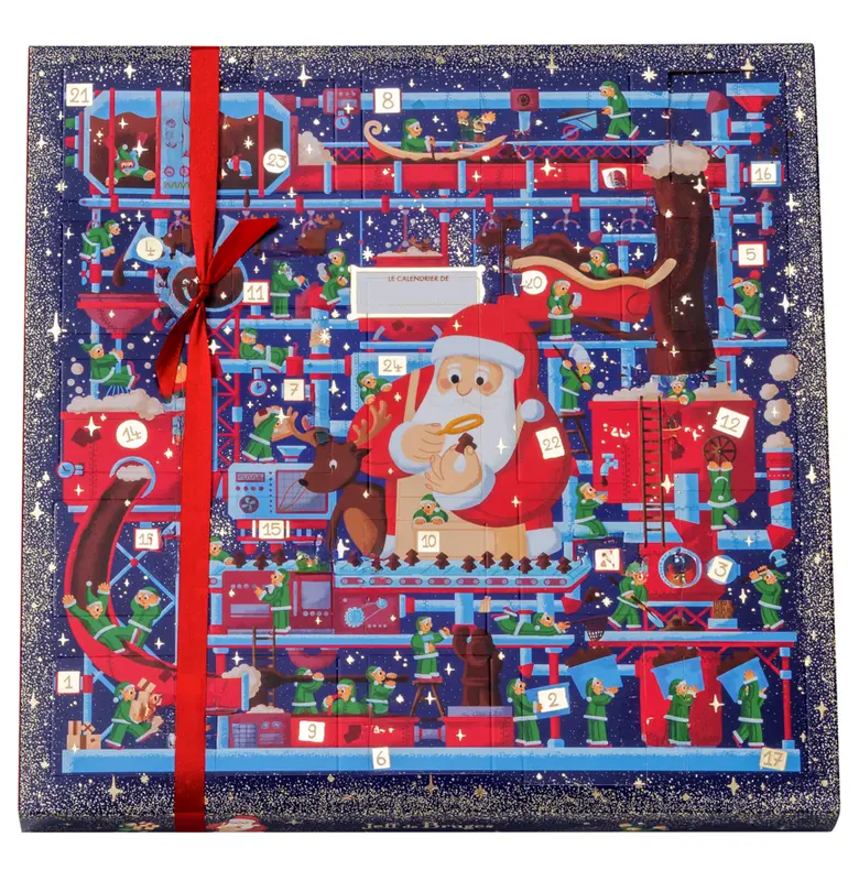 Plongez dans la fabrique de chocolat du Père Noël, aux couleurs chaleureuses et aux détails ludiques. Chaque jour, découvrez une nouvelle surprise chocolatée cachée derrière chaque case, des rennes, des ours moelleux, des sapins et bien plus encore !