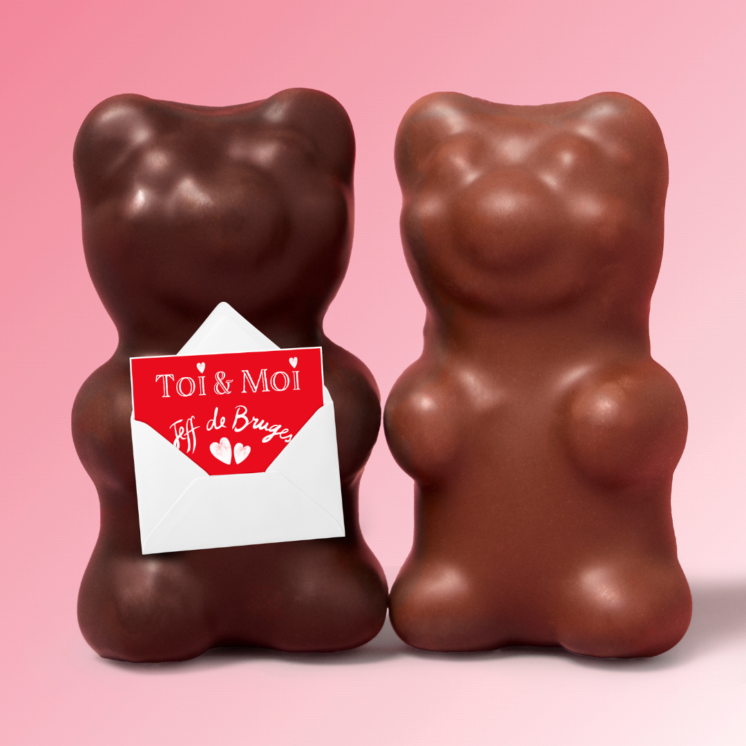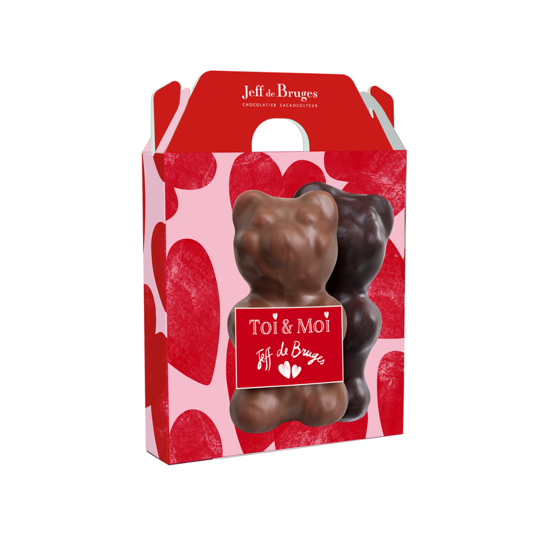 Une boite élégante pensée pour célébrer l’amour, avec deux ours guimauve maxi, symbole tendre du duo ‘toi et moi’.