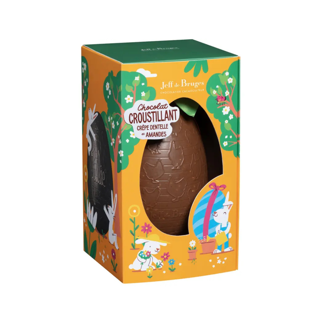 Sophie, Raphaël, Louve, Louis… Nous personnalisons vos oeufs de Pâques en écrivant les prénoms de vos poussins ! Cet oeuf géant en chocolat au lait 36% cacao d’Équateur garni de délicieuses gourmandises rendra à coup sûr la chasse aux oeufs mémorable ! A chacun son oeuf, grâce à la personnalisation e cadeau devient unique.